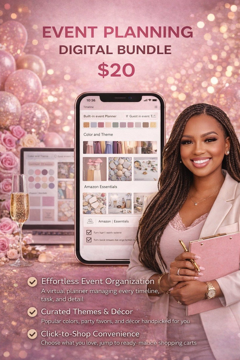 Includes a 2026 event trend look book, ready-made Amazon shopping lists, and simple planning checklists, everything you need to plan birthdays, dinners, showers, and small celebrations with confidence, without the stress or the need for a planner.
