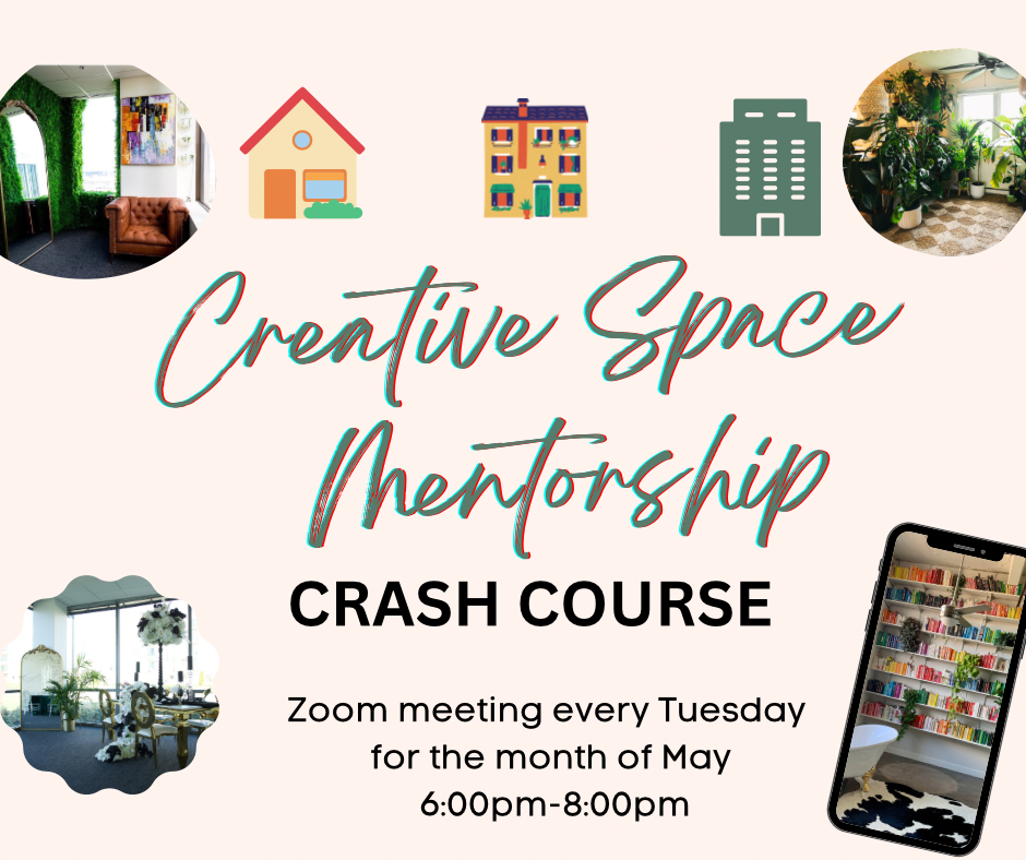 We’re going to give you the blue print on how the creative space business concept works. We will meet up on zoom every Tuesday from 6:00pm-8:00pm Eastern Time all through the month of May. This Crash Course is all about.